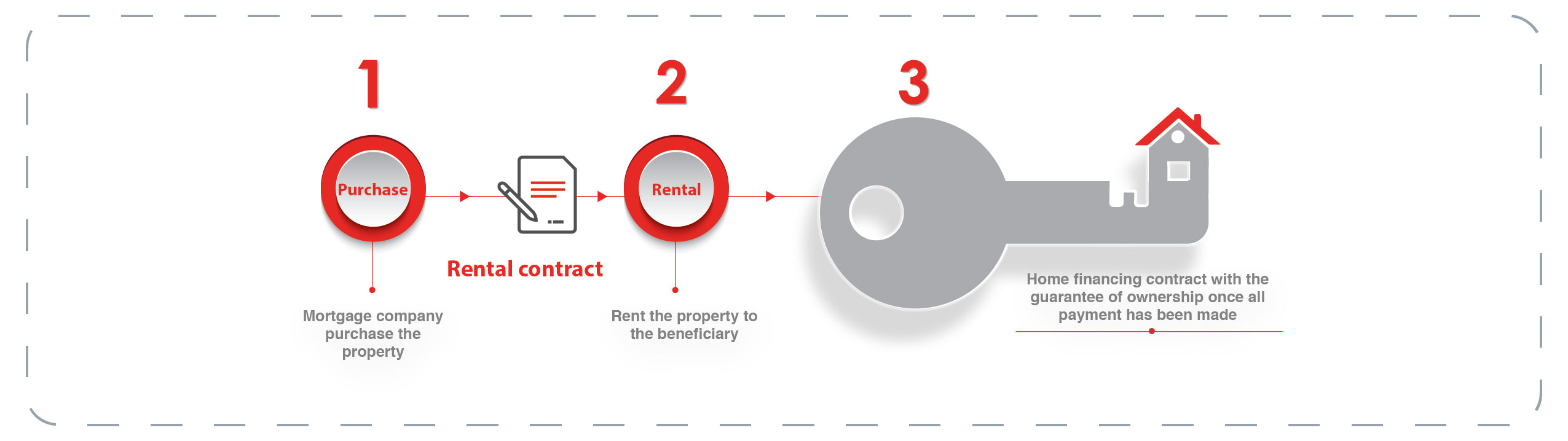 - Ijara, where the lender buys the property and leases it to you, transferring ownership to you once the loan term ends.